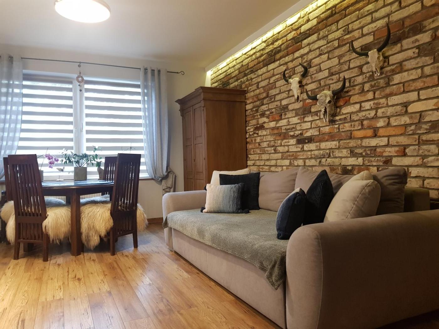 Apartament typu Suite. Boasting a private entrance, this suite includes 1 living room, 1 separate bedroom and 1 bathroom with a shower and a hairdryer. Meals can be prepared in the kitchenette, which is fitted with a stovetop, a refrigerator, kitchenware and a microwave. The suite offers a coffee machine, a dining area, a wardrobe, heating and a flat-screen TV. The unit has 2 beds. Apartament typu Suite - 4 osobowy. Powierzchnia pokoju ok.: 30 mkw.